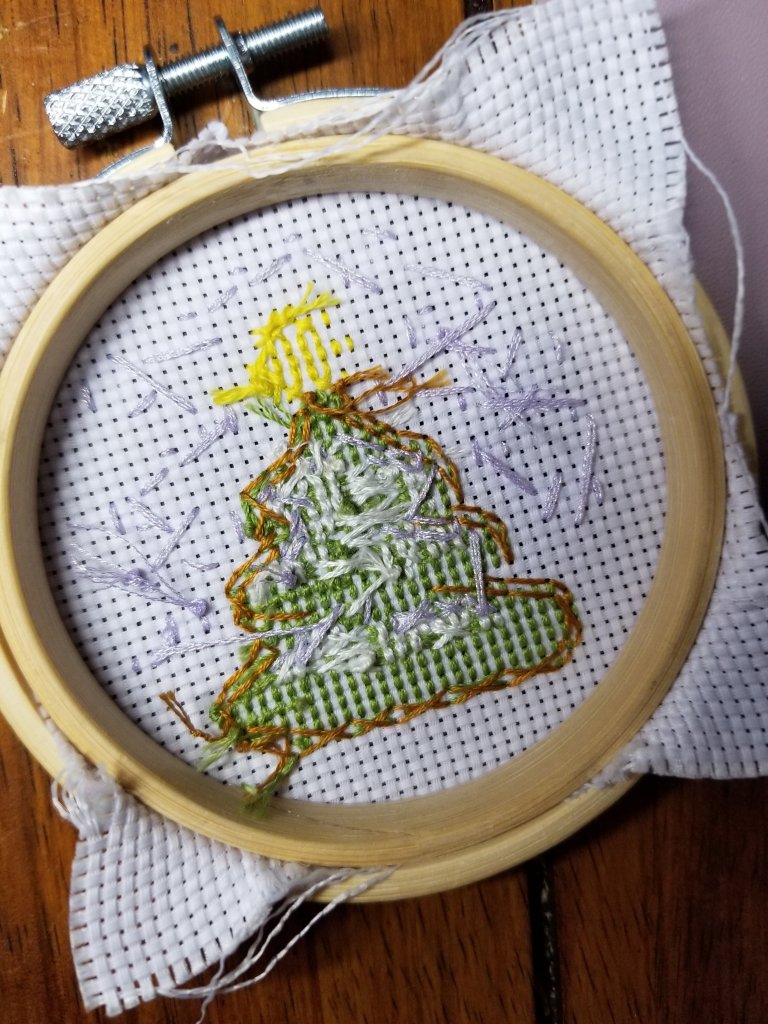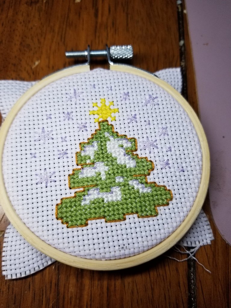 Every year I make Christmas ornaments. Nothing commemorative, just random things based on my whims. This year, I thought that I’d dig into my stash of embroidery floss, only to realized that I’ve been whittling away at it since … March 2020 … without adding to it at all. So yeah, I didn’t have any deep greens. Or any of the other colors that I thought I had.