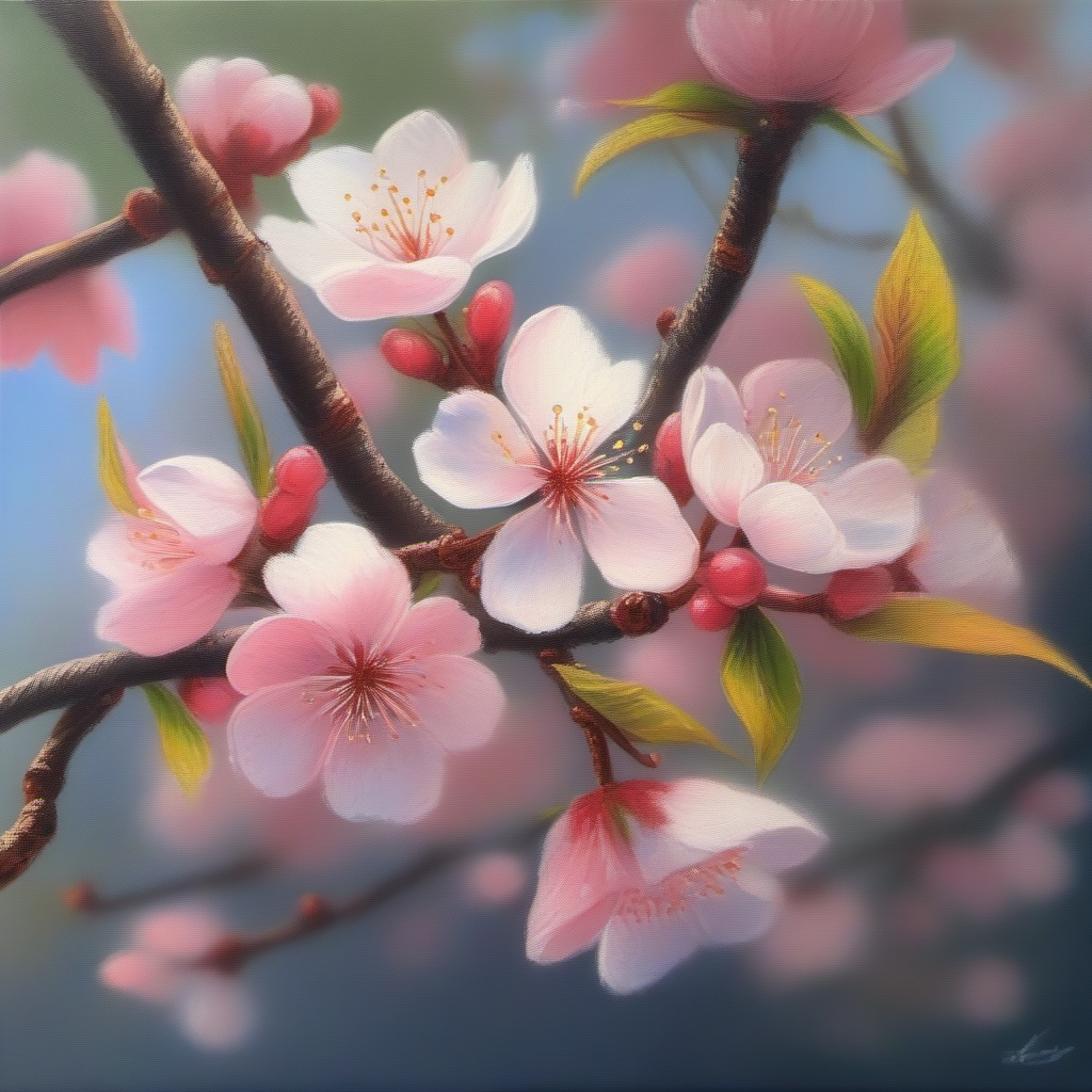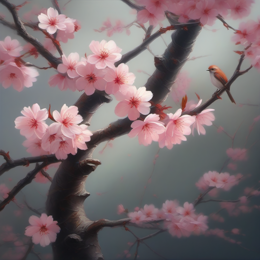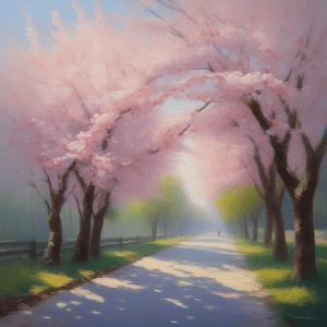 So, let’s see what we can do with the prompt, “Cherry blossom”. Same seed and other settings.