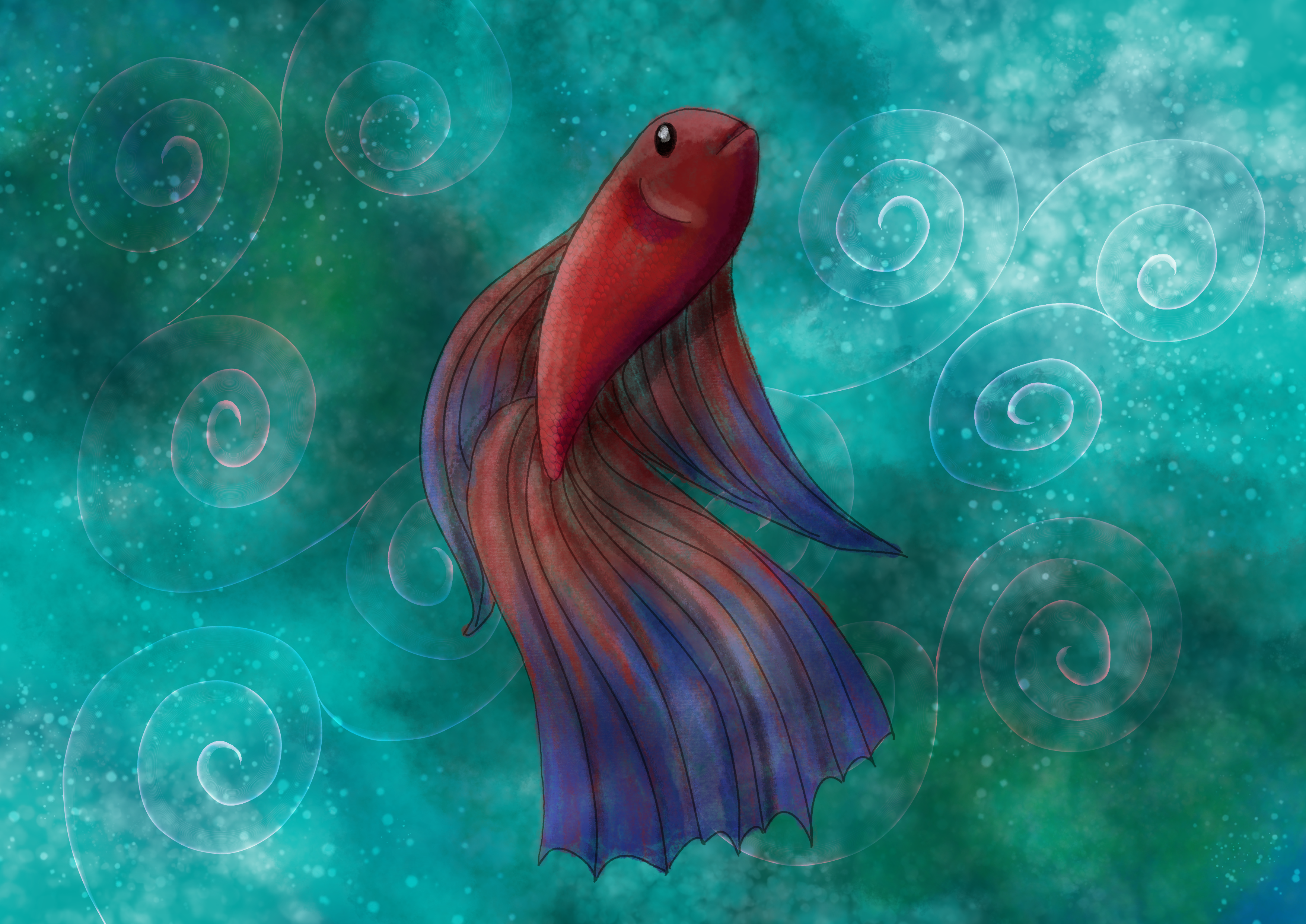 I drew a betta fish. Sort of. I didn’t actually know how to get the shape of the head/mouth from that angle, so I gave it a goldfish head instead. Ha. Ha. Ha.