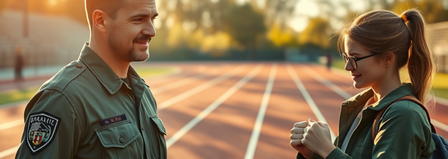 Hartmann waited for Carol out on the running track, smiling slightly when she came through the doors and squinted at him through the sunlight. The corporal was still with her, so the first thing that Hartmann did was dismiss the soldier, to ensure that they would be alone. She was nervous as the corporal left, so she bit her lip as her eyes locked onto the ground, and the action made her look younger and more girlish.